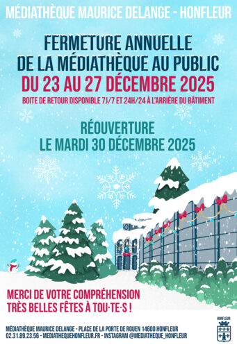 La médiathèque sera fermée au public. La boîte de retour murale reste disponible 24h/24 et 7j/7 à l’arrière du bâtiment durant cette période.