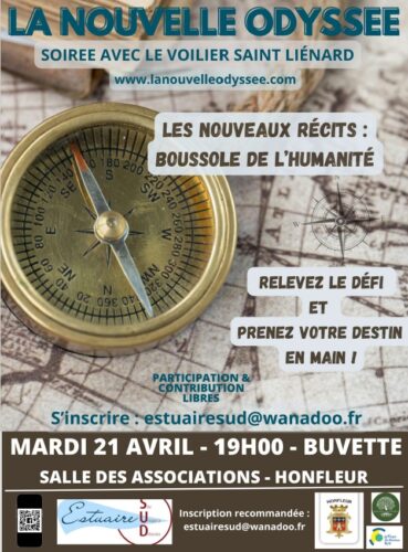 Nous avons le plaisir de vous inviter le mardi 21 avril à 19h00 pour une soirée exceptionnelle « la Nouvelle Odyssée » coordonnée par Estuaire SUD et proposée par l’équipe du voilier le St Liénard. Vous aurez la possibilité de participer à des ateliers à la fois ludiques et instructifs pour inspirer et initier une nouvelle histoire, une histoire où la vie est durablement respectée et où l’avenir se transforme en un projet plus grand et plus désirable !