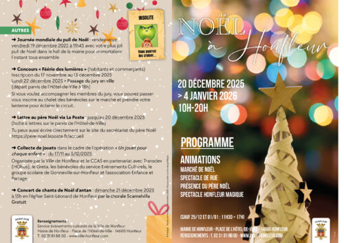 Vous êtes ici : Accueil » La Municipalité » Votre Mairie » Actualités » Le programme du marché de Noël de Honfleur !
