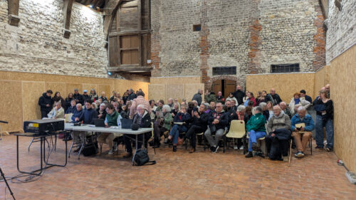 La doyenne de l’assemblée, Mariette Vinas, prend maintenant la place de Michel Lamarre pour mener à bien l’élection officielle du maire. Le public est très nombreux dans le Grenier à Sel