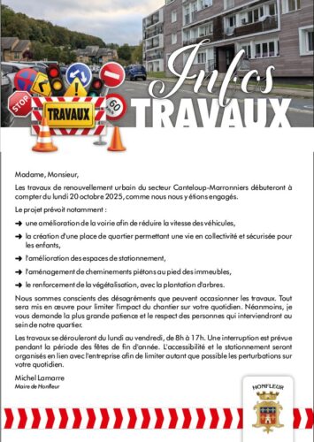 Les travaux vont démarrer le 20 octobre prochain. Retrouvez les éléments en cliquant sur ce document en PDF :info travaux